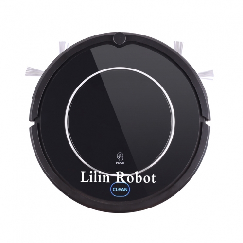 C. Dotat cu buton de atingere LED, filtru HEPA, două perii laterale, telecomandă și mop.
